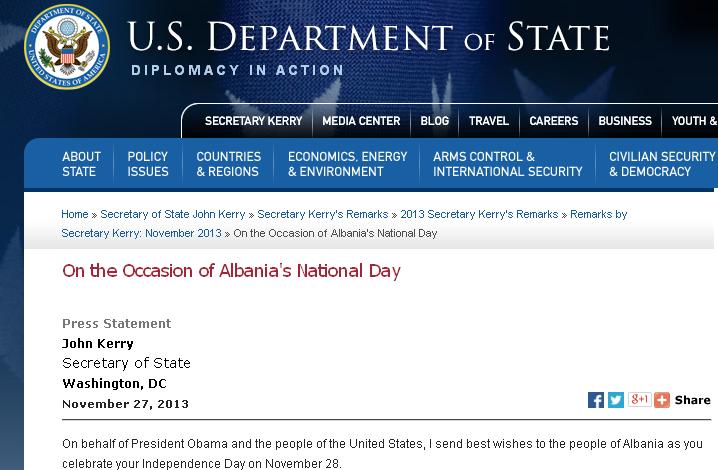 Sekretari i Shtetit John Kerry, në emër të Presidentit Barak Obama dhe të popullit amerikan Uron për Ditën e...