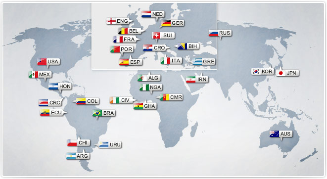 Pjesmarrësit e Botërorit 2014 që do të zhvillohet në Brazil nga data 12 qershor deri më 13 korrik. Africa Algeria...