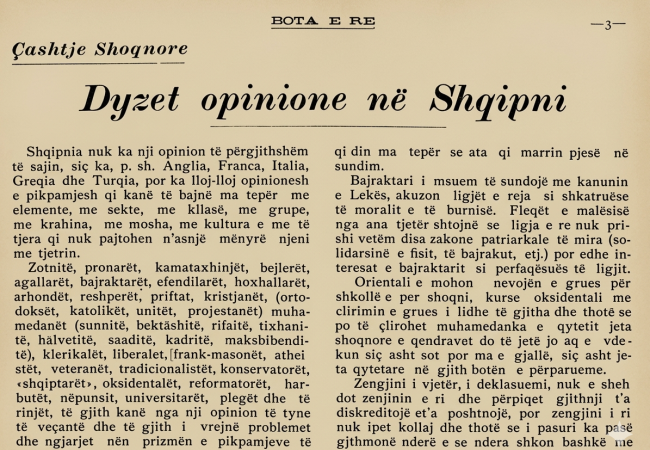 Nga Eqrem Çabej / Shqiptari i thotë vetes shqiptar, vendit të vet Shqipëri, Shqipni, po populli njihet në botë,...